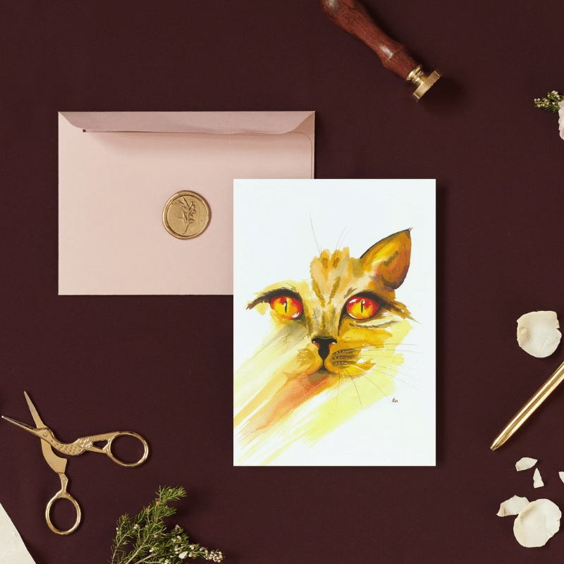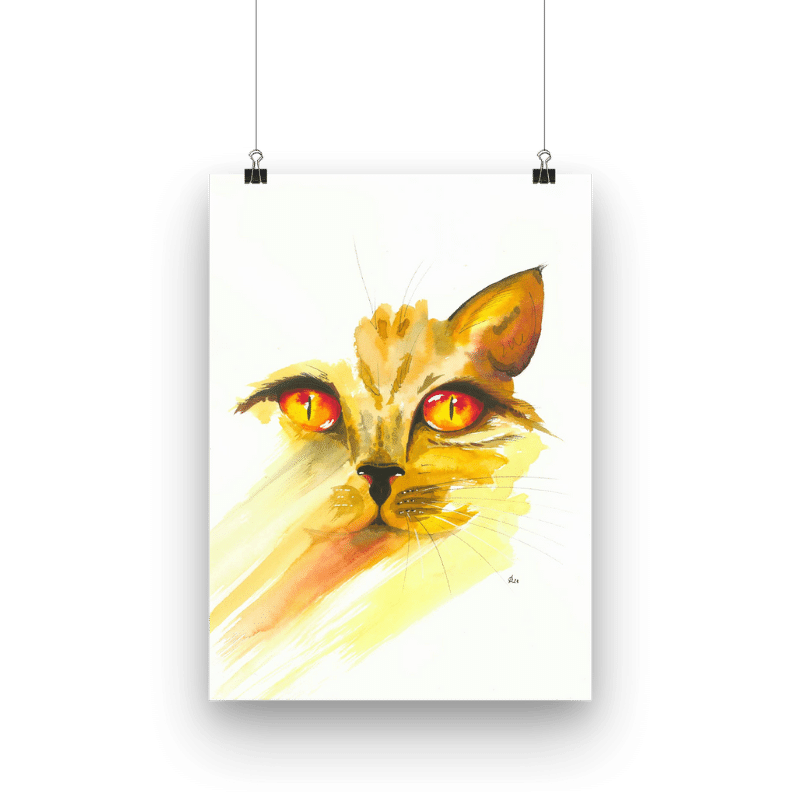 Tête de chat colorée. Dessin réalisé à l’encre sur papier Velin aquarelle 320g.